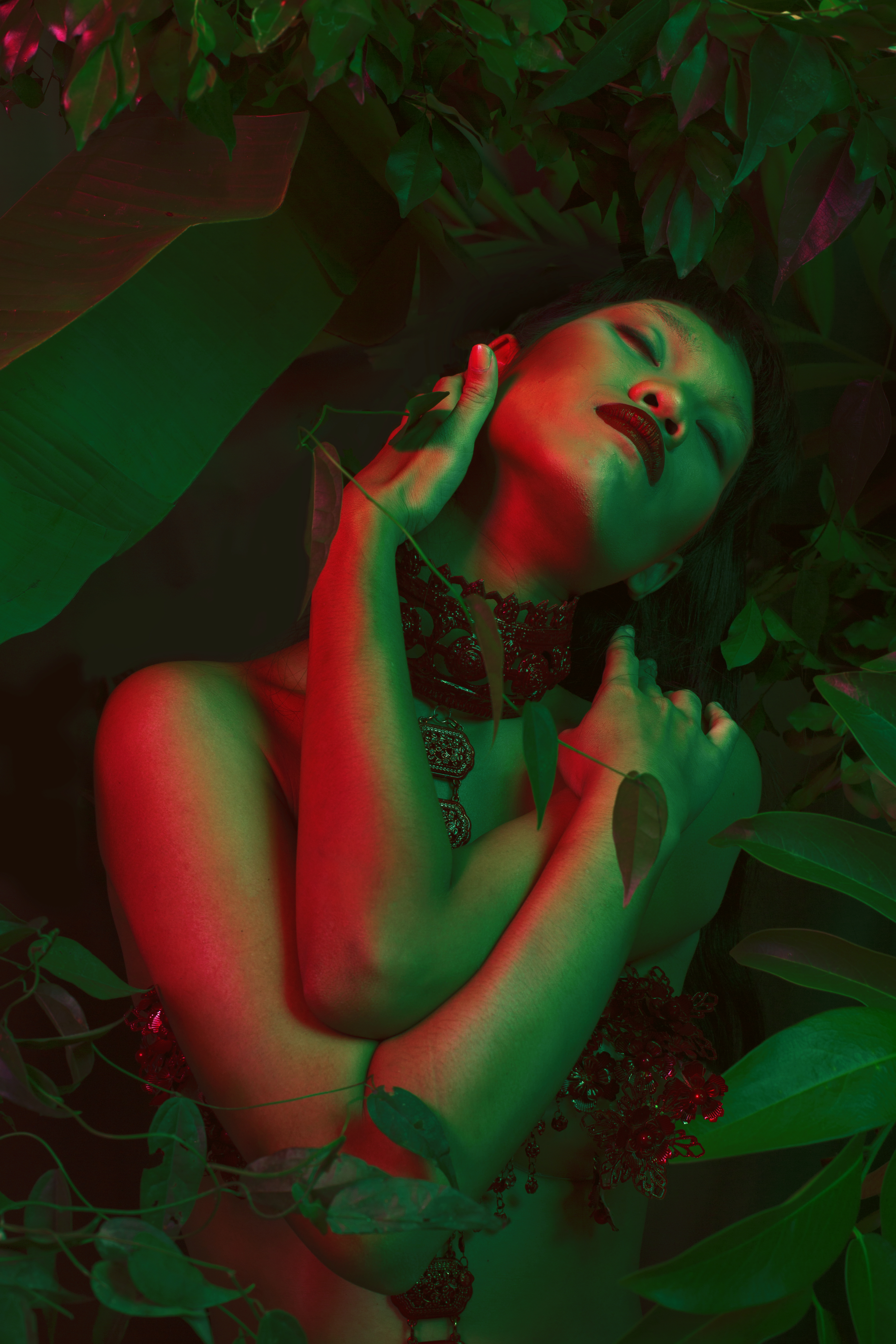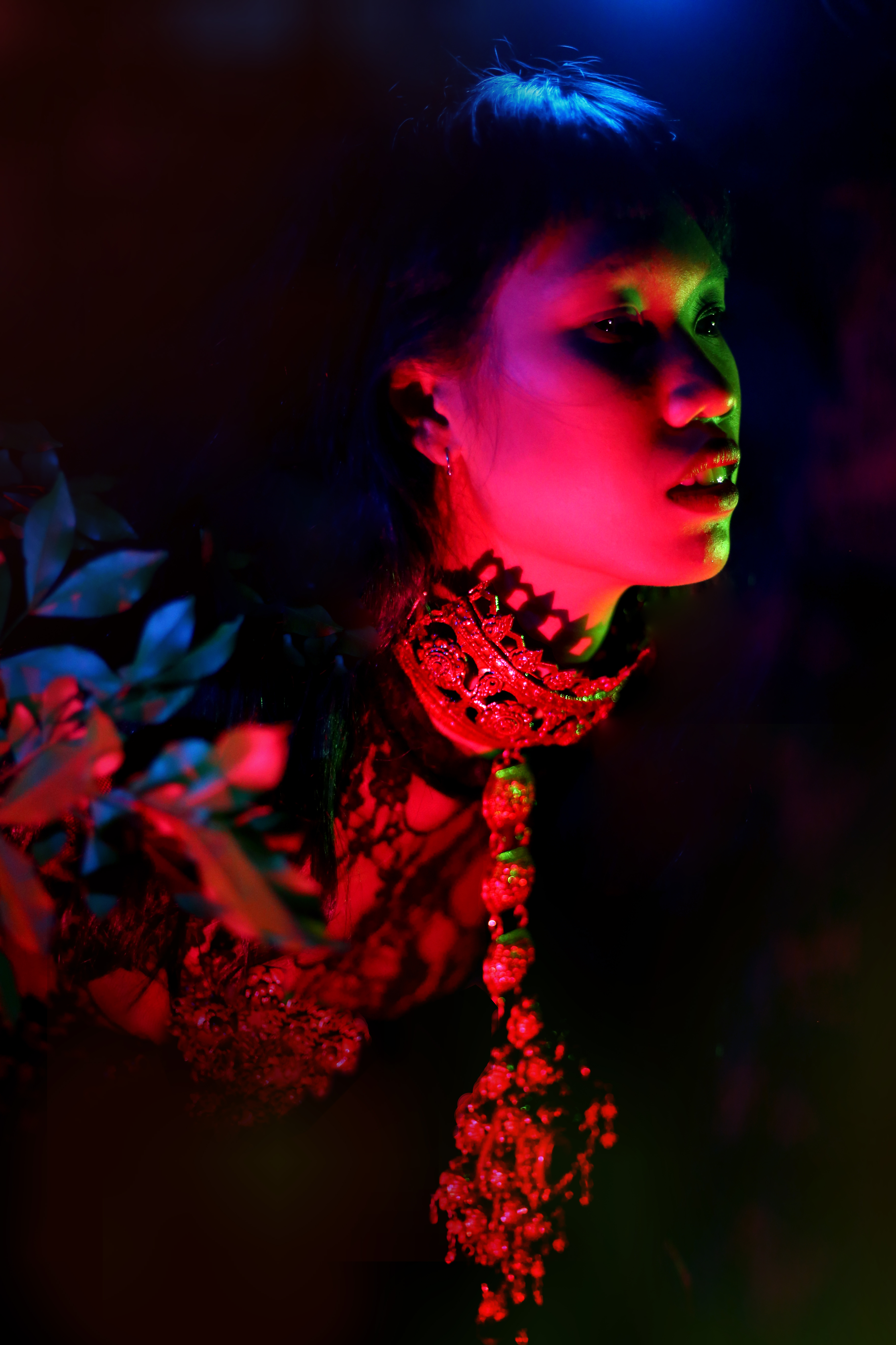 For lighting, we used red and green. According to the legend, when Kra-Sue passes by, her internal organs glow green, and red symbolizes blood and the organs of Kra-Sue.